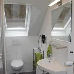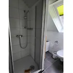 La villa Pension Sonnenberg Comfortable Holiday Residence dispone di un bagno con un bagno con WC separato e una doccia. Ci sono anche asciugacapelli e asciugamani.